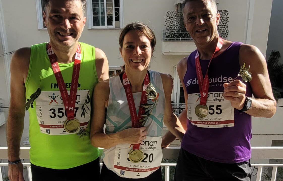 Henk startte de marathon van Athene net als Pheidippides in de stad Marathon om vervolgens in zuidwestelijke richting, deels langs de kust, naar het Panathenaic Stadion in Athene te rennen. In dit stadion vonden de eerste moderne Olympische Spelen van 1896 plaats. Het traject van de marathon van Athene staat bekend als de zwaarste marathon ter wereld: tussen kilometers 10 en 31 gaat het vrijwel continue bergopwaarts. Het is een geweldige prestatie dat Henk deze marathon heeft afgelegd in een tijd van 4:18,52 uur. Als vereniging feliciteren wij Henk van harte met dit mooie resultaat en zijn trots om zo’n topper in ons midden te hebben.