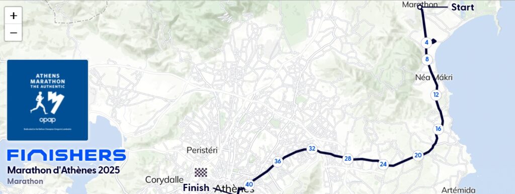 Langeafstandsloper Henk van Zutphen (rechts op de foto) heeft op zondag 9 november in Athene zijn allerlaatste hele marathon gelopen. De afgelopen decennia heeft Henk aan talloze nationale en internationale marathons meegedaan, waaronder 22 (!) keer aan de Rotterdam Marathon (zie artikel AD van 11 april 2025). Hoe mooi is het dan om je marathoncarrière af te sluiten op de plek waar de marathon naar verluid is ontstaan. De lengte van een marathon is immers is gebaseerd op de legende van de Griekse soldaat Pheidippides, die in 490 v.Chr. van Marathon naar Athene rende om de overwinning van de Grieken op de Perzen te melden.