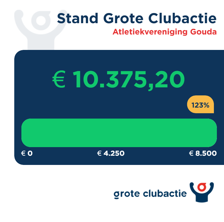 Atletiekvereniging Gouda heeft dit jaar een recordbedrag van 10.519,20 euro opgehaald via de Grote Clubactie. Hiermee is bijna vier keer zoveel opgehaald als het landelijk gemiddelde van 2778 euro per club. De...