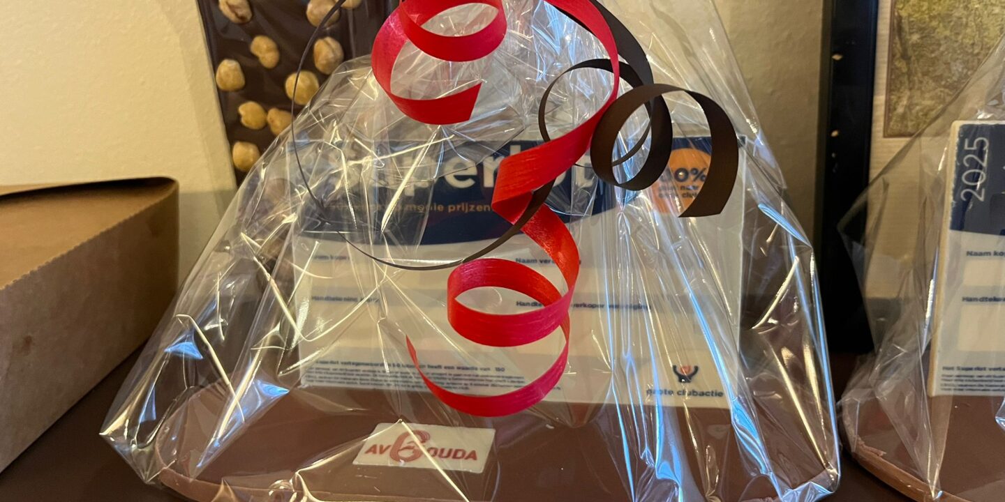 - Koop of verkoop vandaag 5 loten en doe mee aan de loterij met mooie prijzen van lokale Goudse ondernemers, zoals het chocoladepakket van de foto.