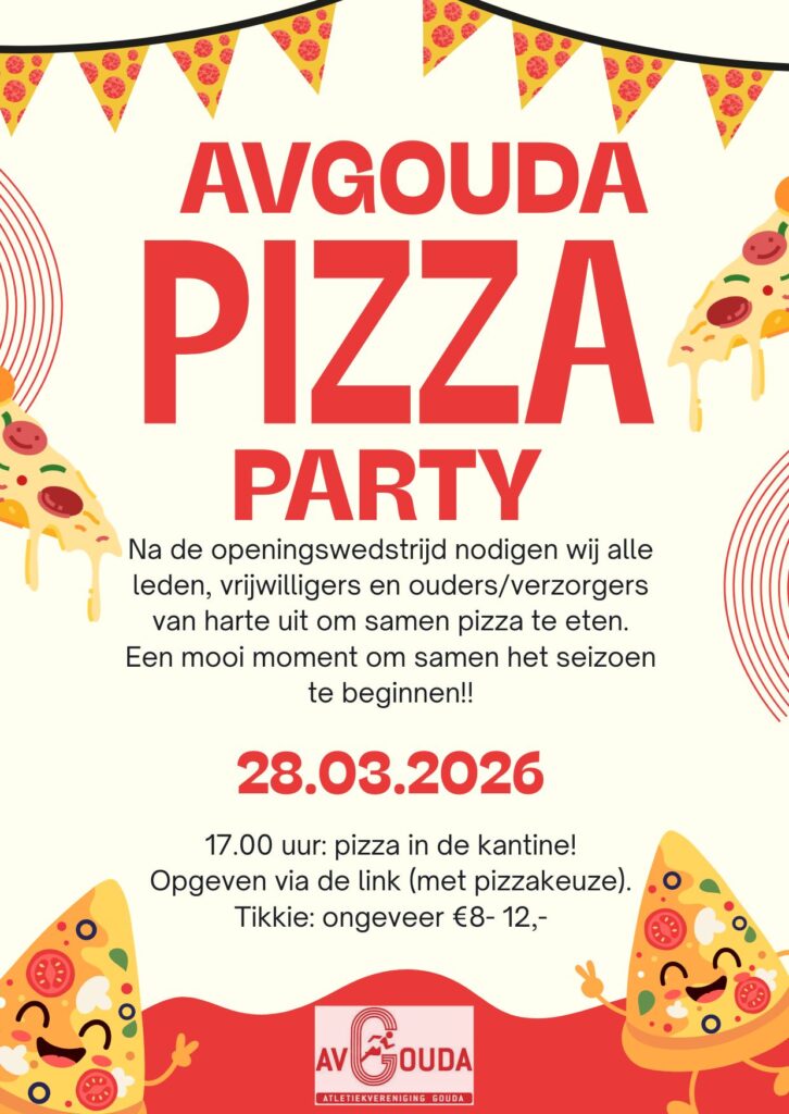 De openingswedstrijddag wordt afgesloten met een heuse pizzaparty. Wat is er gezelliger dan samen, en hopelijk buiten, nog wat te eten en te drinken na een mooie wedstrijddag. De pizza’s worden rond 17.00 uur geserveerd. Via dit formulier kun je je aanmelden voor de pizzaparty.